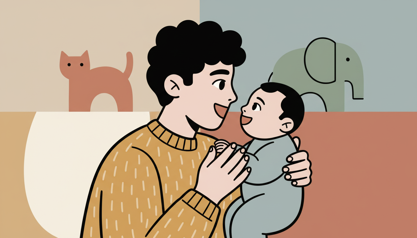 Hold your child close and sing simple songs while making eye contact. Let them watch your mouth and facial expressions as you sing. Pause between verses to see if they respond with sounds or movements. This creates a shared musical moment that builds connection through sound and sight.