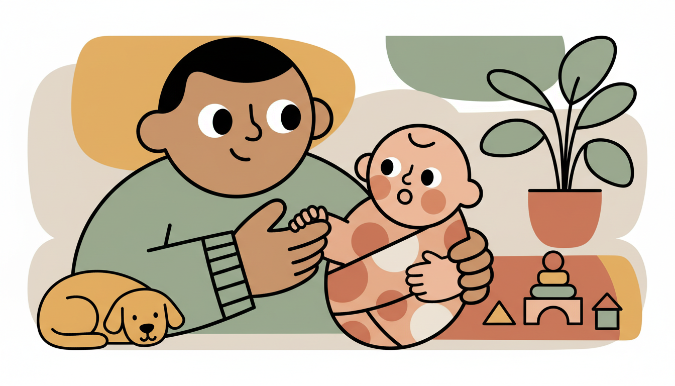 Throughout your day together, respond to your child's sounds and movements with gentle, caring touch. When they reach toward you, take their hand softly. When they coo, stroke their cheek tenderly. When they seem uncomfortable, place a warm hand on their belly. These small moments of physical connection build trust and emotional bonds.