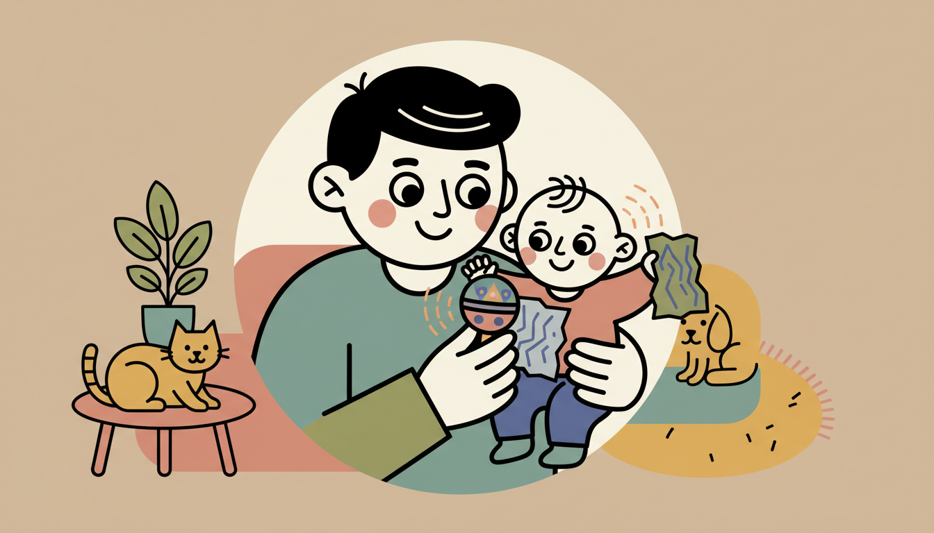 Create gentle sounds using everyday objects like a rattle or crinkly paper while maintaining a positive, playful atmosphere. Let your child explore the sounds with you, responding to their reactions with warm encouragement. Use an upbeat tone and smile as you discover sounds together. This creates joyful shared experiences.