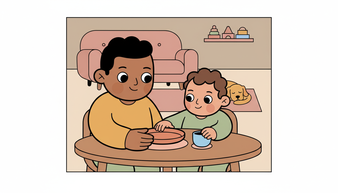 Use the same plate, cup, and spot at the table for each meal. Let your child see you place items in the same arrangement every time. As they develop, they can help place their cup in its spot. This visual consistency teaches order and creates anticipation for the meal routine.