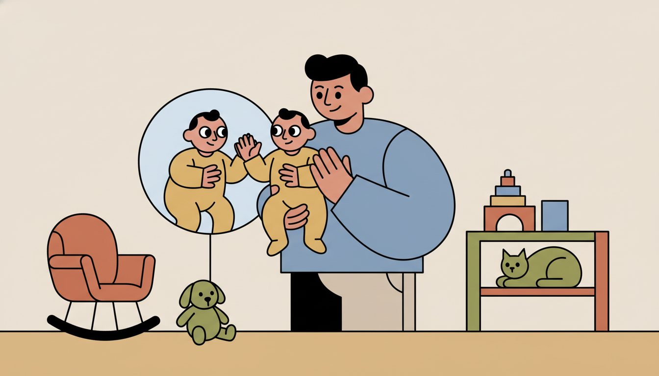 Imitation activities provide immediate visual feedback that helps infants connect their efforts with results. By focusing your language on their attempts rather than success, you build early foundations of growth mindset during cognitive development. Growth mindset interventions show significant positive influence through self-efficacy, and this begins with how caregivers frame early learning attempts (Ba, Y., Ming, W., & Zhang, H., 2025). The mirror provides natural cause-and-effect learning while your narration establishes that trying new movements is valuable regardless of outcome.
