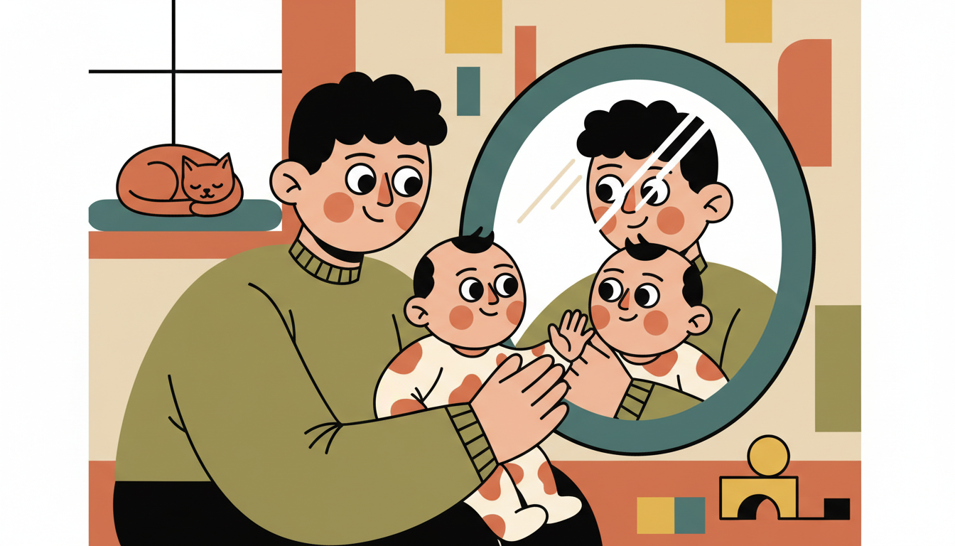 Position your child so they can see both their face and yours in the mirror. This helps them start recognizing familiar faces.