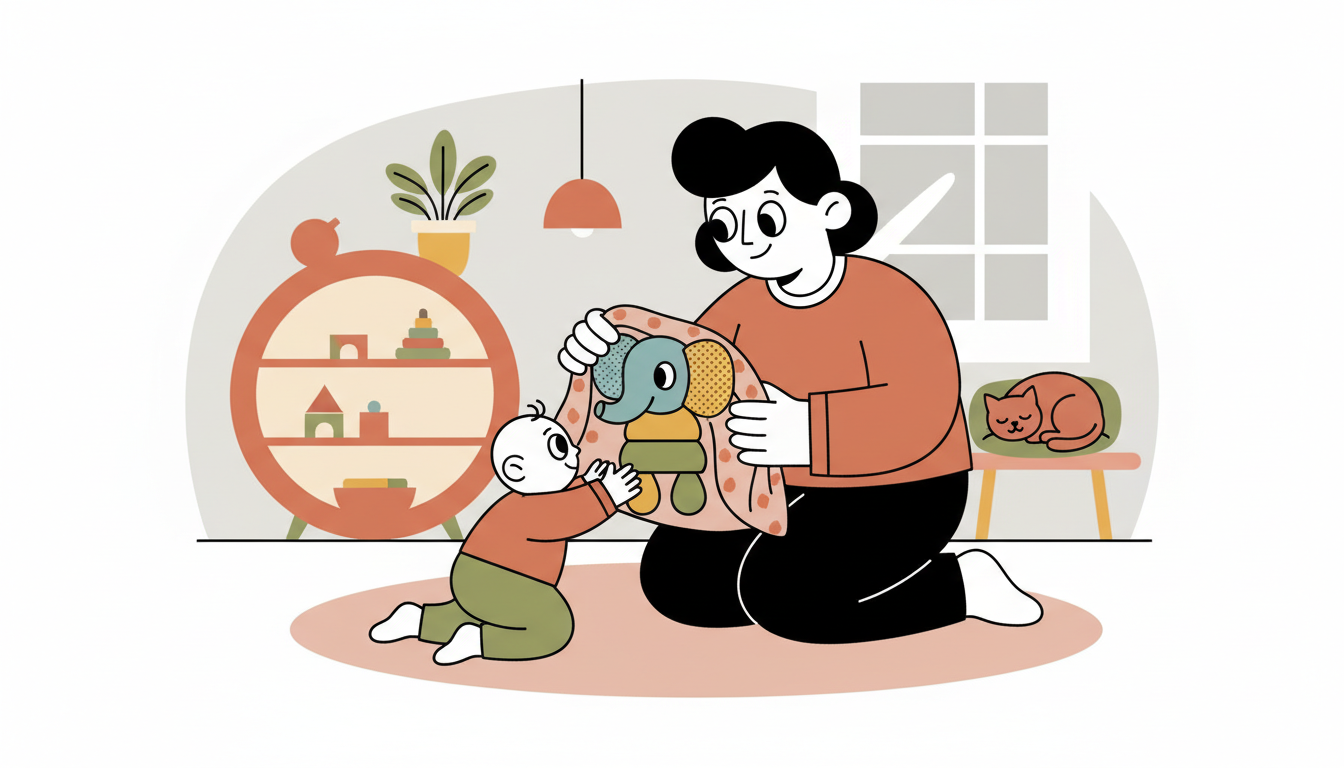 Partially hide a toy under a soft cloth where your child can see part of it. Wait two to three seconds while your child looks at it or reaches. Then slowly pull the cloth away to reveal the full toy. This playful peek-a-boo variation teaches waiting through a game they will find delightful.