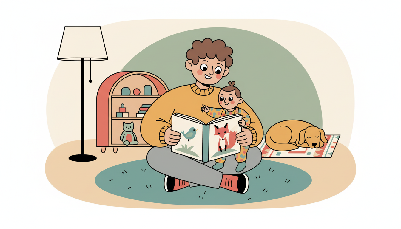 Read a simple picture book with your child. Point to pictures and name objects, animals, or people. Pause to let your child point too. This builds vocabulary and language skills while creating a warm connection between you and your child.