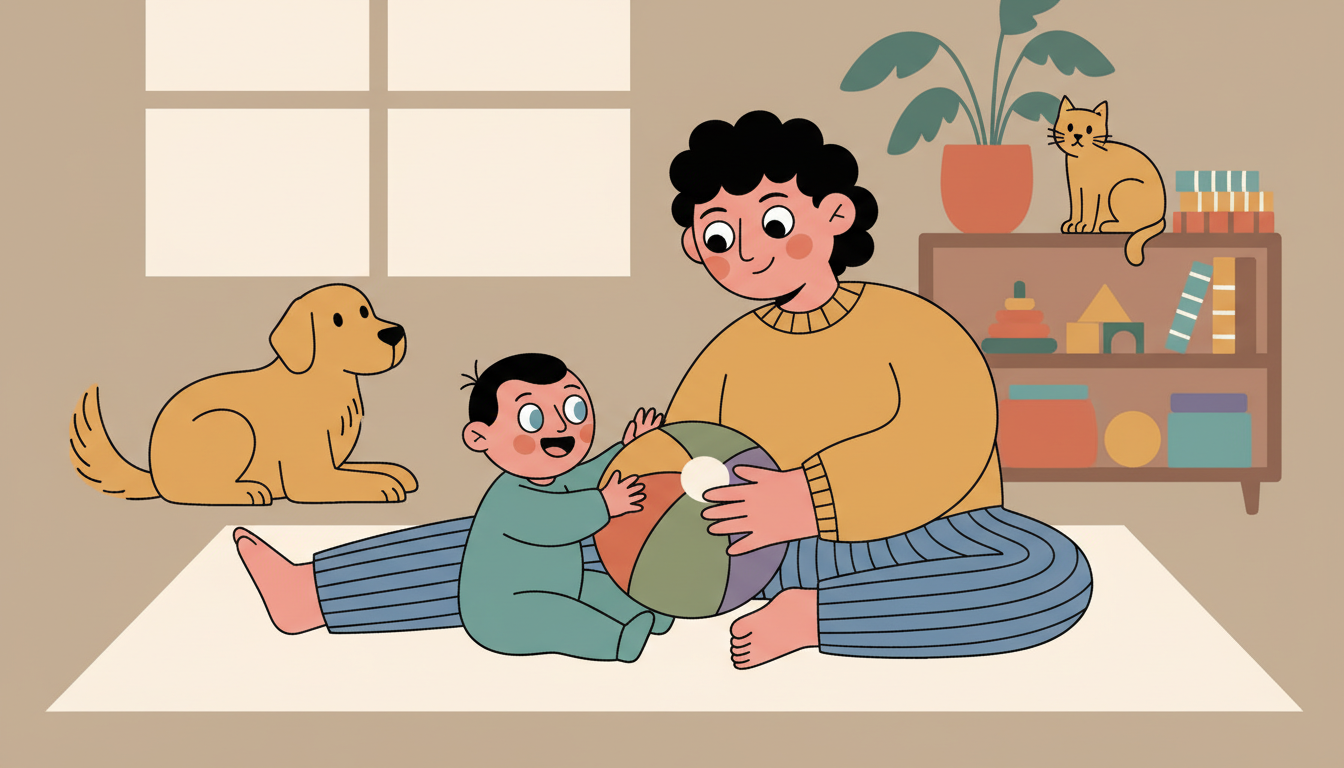 This activity exemplifies responsive interaction through back-and-forth exchanges that build neural connections. Engaging in activities together strengthens bonds during infancy. Families engaging in regular shared activities show 30% better communication quality and emotional connection, as joint activities provide opportunities for positive interaction and memory building (Orthner & Mancini, 1991).