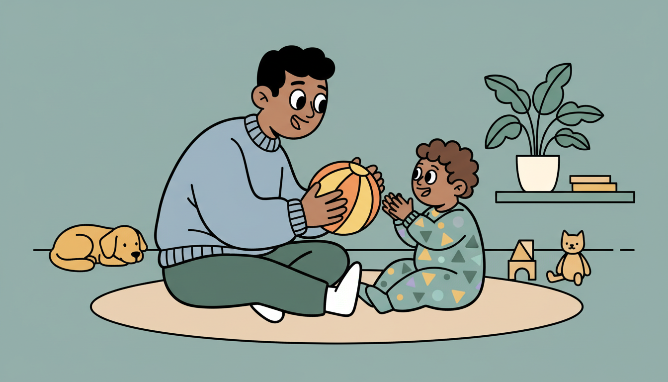 Sit on the floor across from your child and roll a ball back and forth. This simple turn-taking game helps your child learn to wait, watch, and respond. Start close together so success comes easily. Clap and smile when they roll it back to you.
