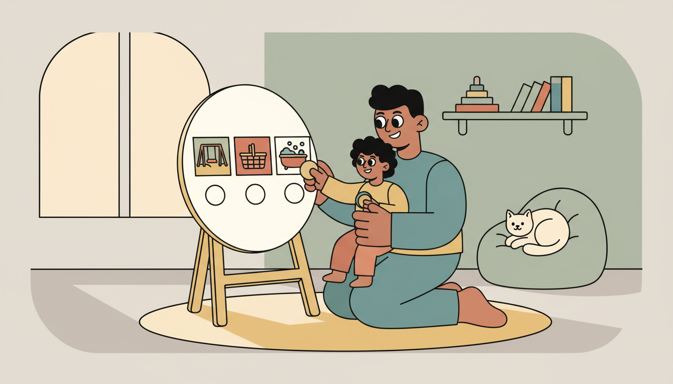 Create a simple planning board together for your next activity. Use pictures to show the three main steps of what you will do. Let your child help decide the order and talk through each step. After the activity, review together how well you followed the plan.