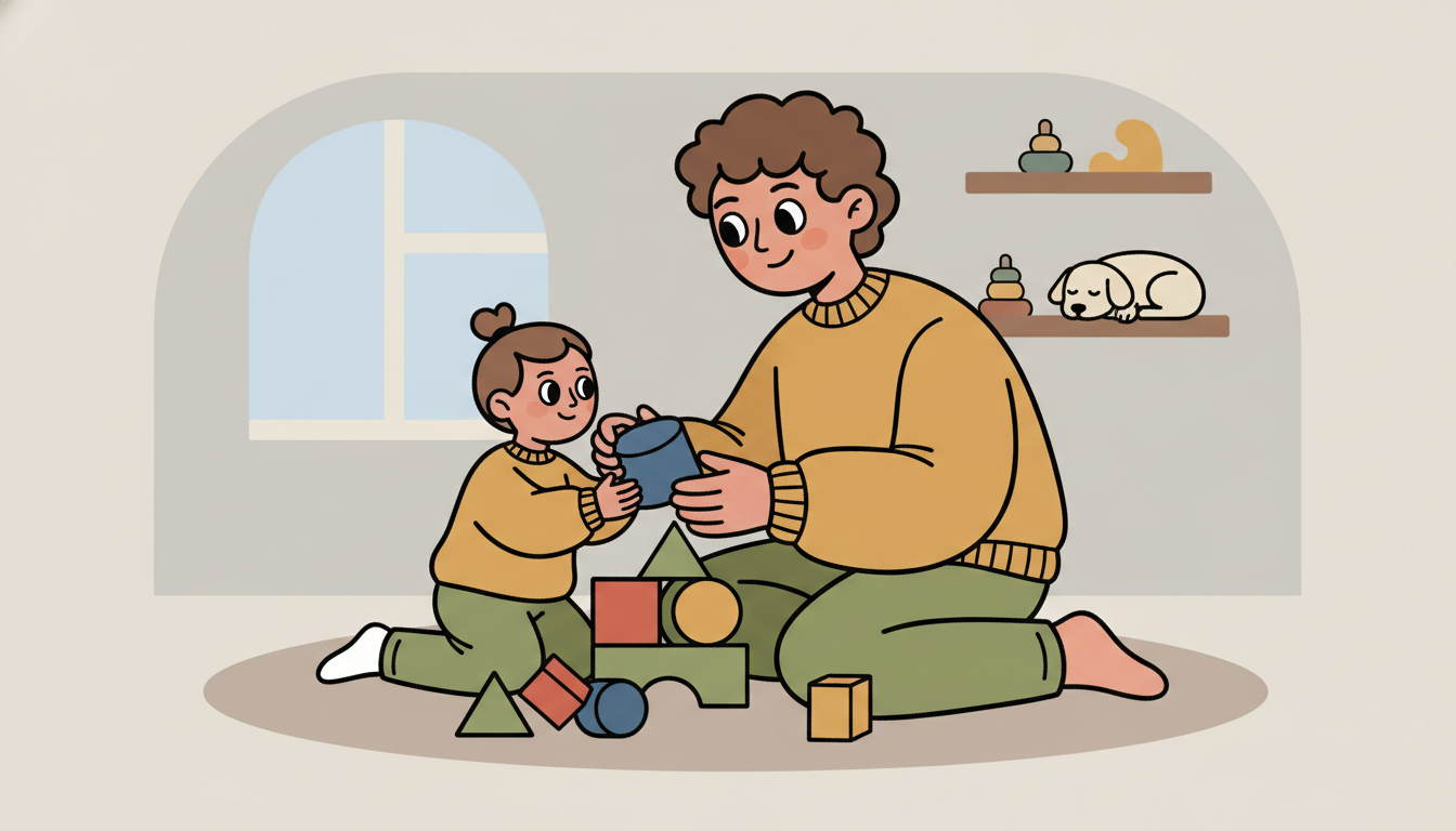 Sit with your child and build a tower together using 4-6 blocks. When it falls, pause and say something like, that fell down. Let's build it again. Help your child stack the blocks again, celebrating the rebuild rather than the fall. This simple activity teaches that setbacks are temporary and trying again is natural.