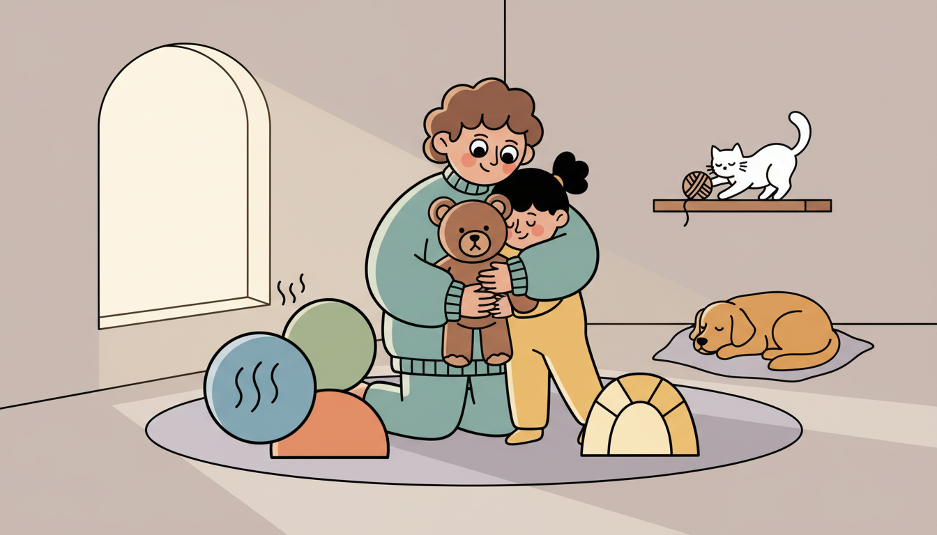 Create a simple calm down plan with your child. Practice three calming strategies together like taking deep breaths, counting to five, or hugging a stuffed animal. Make it playful by pretending to feel upset and then using the tools. This teaches emotion regulation skills your child can use independently.