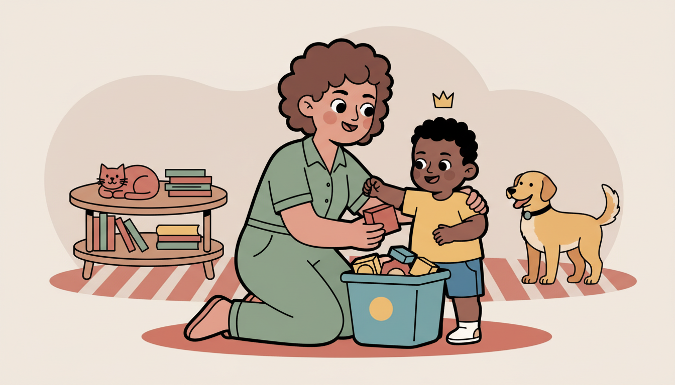Put your child in charge of cleaning up one specific area or type of item after playtime, like putting all the blocks in the bin or all the books on the shelf. Use a simple cleanup song or routine to signal when it's time for their captain job. Acknowledge their leadership role in keeping the space organized. This creates purpose through responsibility and completion.