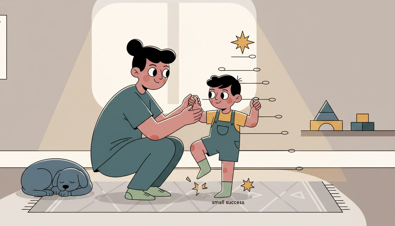 Choose an activity your child finds slightly difficult, like balancing on one foot or using scissors. Break it into small steps and practice together. Celebrate each small success and encourage trying again when they wobble or make mistakes. This shows that skills improve with practice and that mistakes are part of learning.