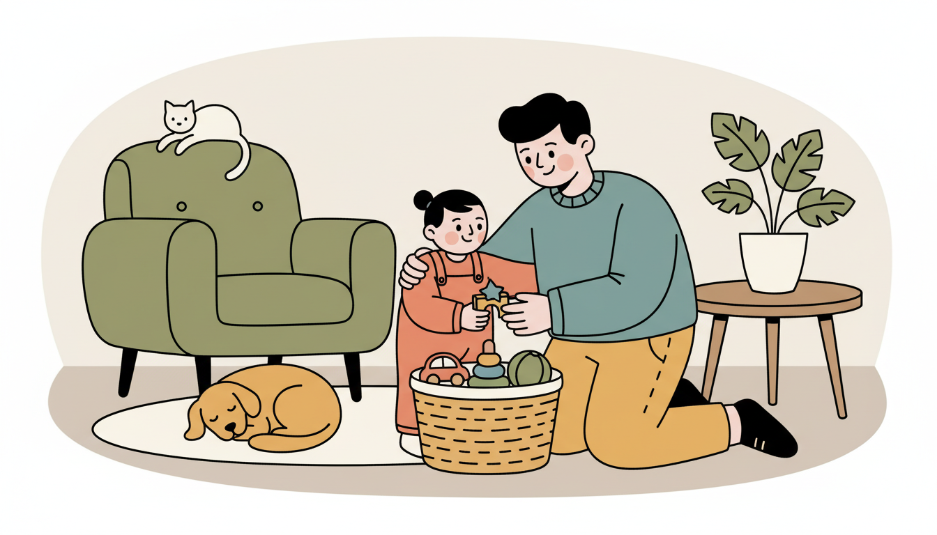 During cleanup time, invite your child to help put toys in a basket or bin. Hand them one toy at a time and guide them to drop it in. Celebrate each contribution with a smile or gentle clap. This simple task gives your child a sense of purpose and shows them their actions matter. Even putting away two or three toys counts as meaningful help.