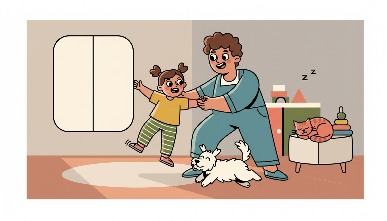 Put on your child's favorite songs and dance together for 15 minutes. Mix fast songs with slow ones. Try different movements like jumping, spinning, marching, and swaying. Pause the music randomly and freeze in place, then continue when the music starts again.