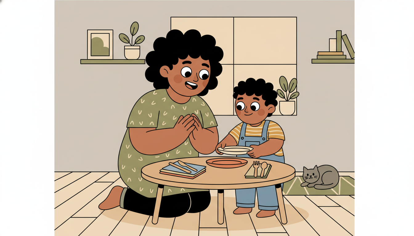 Give your child the job of setting the table for a meal. Show them where each item goes, then let them do it themselves. You can watch nearby but resist jumping in to fix things. This responsibility helps them feel capable and trusted as an important part of family routines.