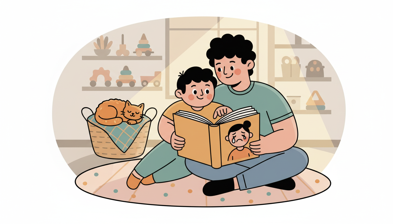 During your reading time, pause to discuss how story characters feel. Ask your child why they think the character feels that way. Point to facial expressions in pictures. Connect character emotions to times your child felt similar feelings. This builds empathy and emotional vocabulary through familiar stories.