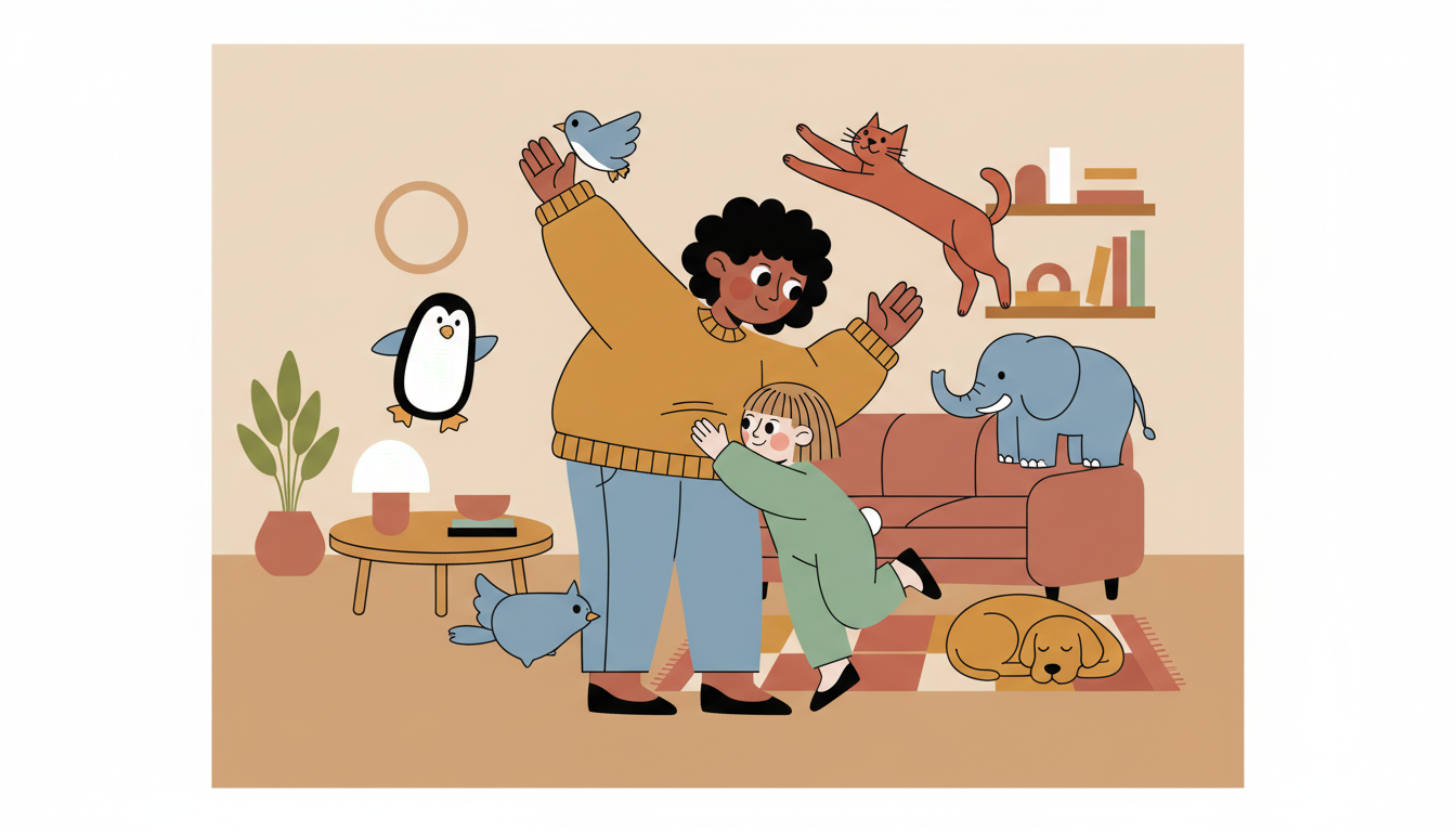 Tell or read a story that involves different animals, and act out how each animal moves. Hop like a bunny, waddle like a penguin, stretch like a cat, or stomp like an elephant. Your child can suggest animals to add to the story. This combines physical activity with imaginative play and storytelling.