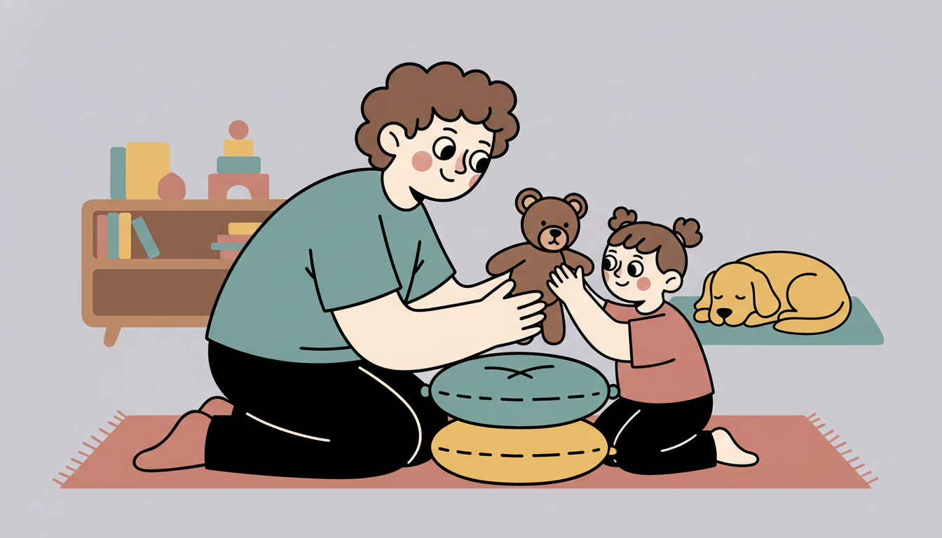 Connect the story to real moments. When your child faces a challenge later, you can say, 'Just like teddy, you can try again.'