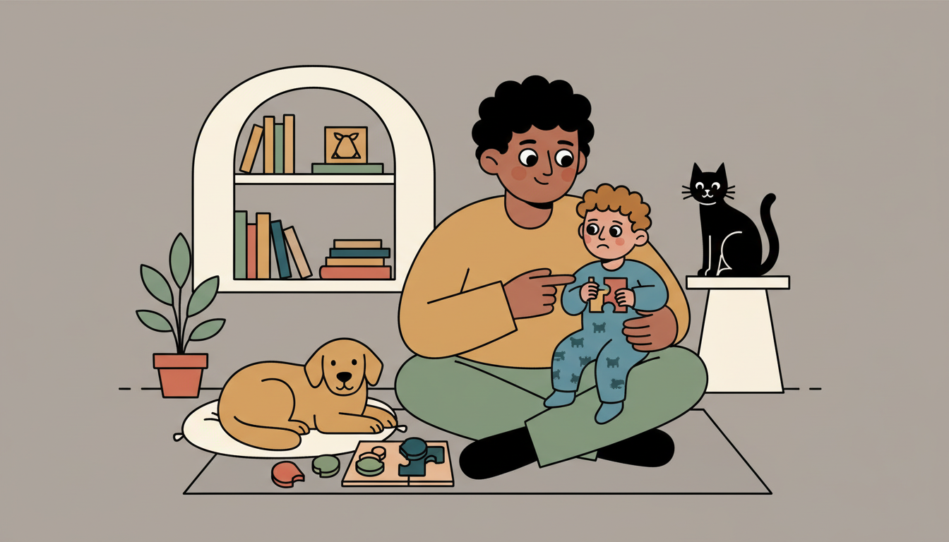 Throughout your time together, gently name emotions as they happen. When your child looks frustrated with a puzzle, say "That feels hard." When they laugh, say "You feel happy." When they run to you after a loud noise, say "That scared you. I'm here." This helps them learn to identify and trust you with their feelings.