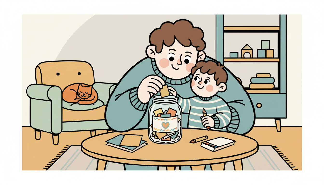 Create a gratitude jar together using any container you have. Each day, help your child draw or dictate something they're grateful for on a small piece of paper and add it to the jar. Once a week, pull out a few papers and read them together. This creates a visual reminder of positive experiences and helps your child build a gratitude habit. The jar fills up over time, showing accumulated appreciation.