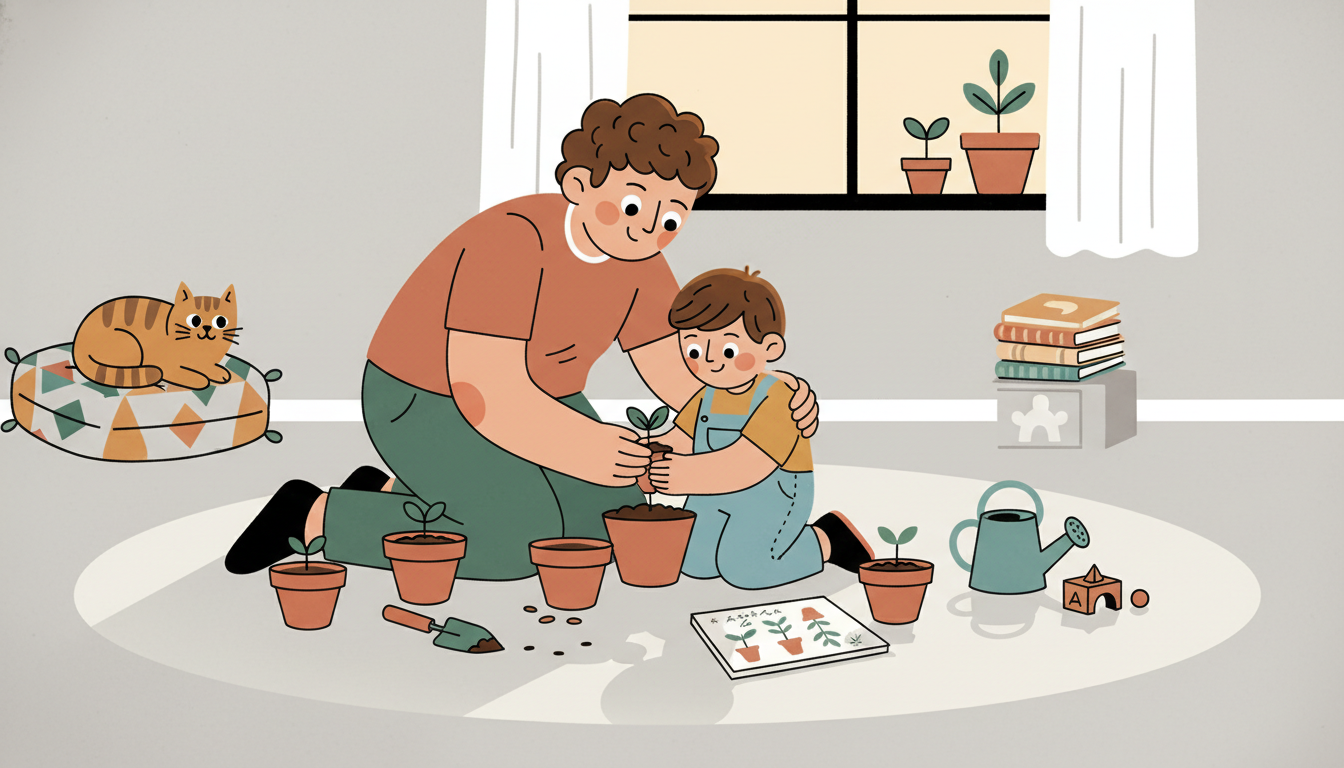 Plant seeds together and care for them daily over several weeks. Your child waters the plant, checks for growth, and draws pictures of changes they observe. This creates a multi-week project where patience and daily effort lead to visible results.