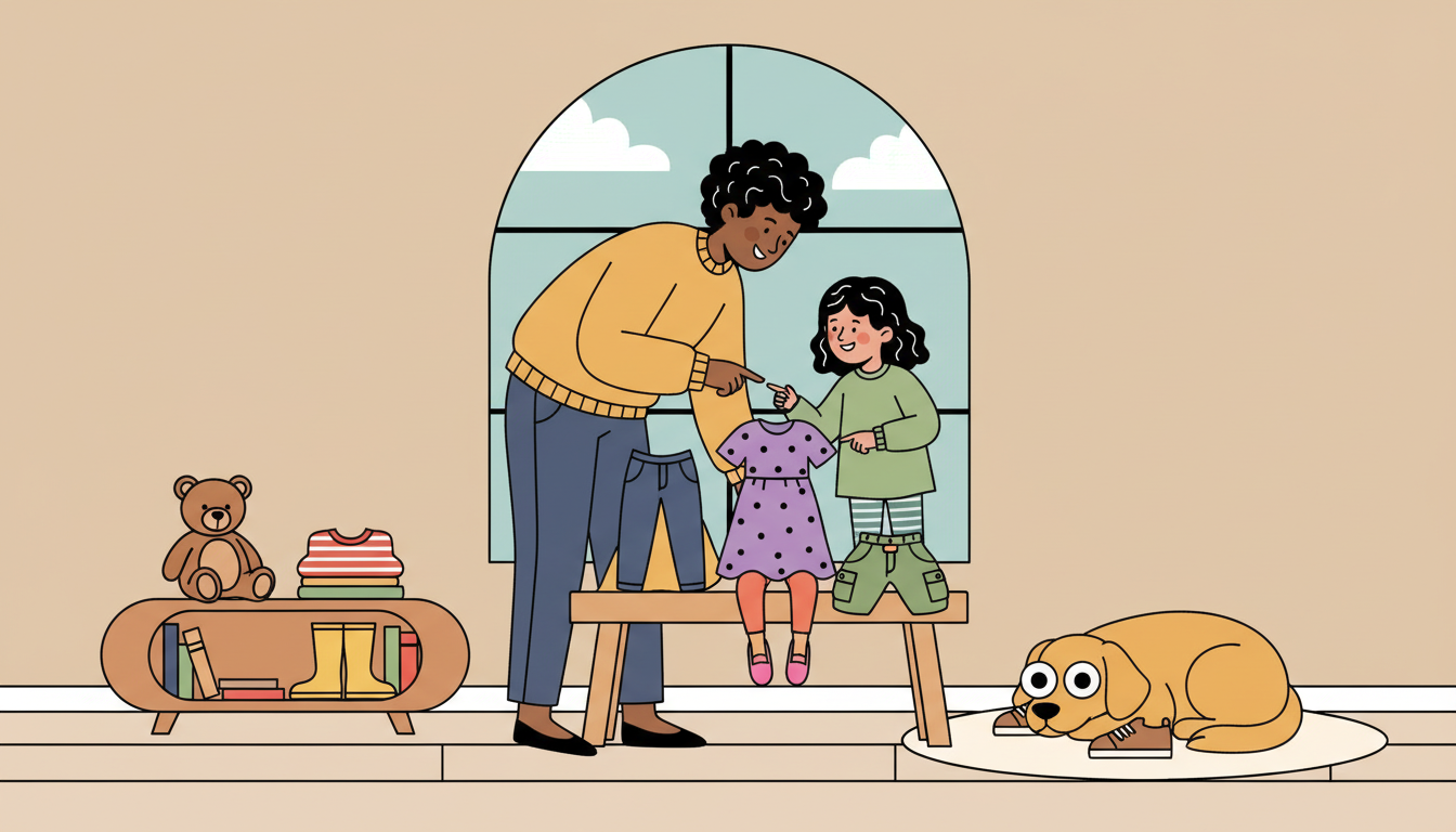 Lay out weather-appropriate choices to ensure success. Resist the urge to override their selection unless safety is a concern.