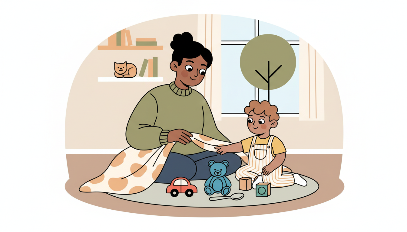 Place three to four familiar objects where your child can see them. Cover them with a cloth and remove one object. Uncover the remaining items and ask 'What's missing?' Start with very familiar items like a spoon, toy car, or stuffed animal. This simple game builds visual memory and attention skills. As they get better, you can add more objects or remove two items.