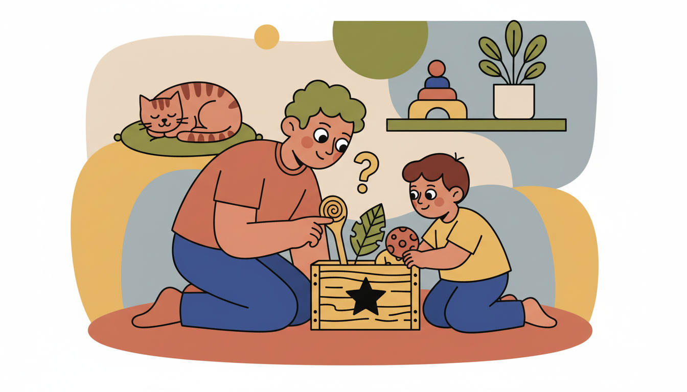 Place three unfamiliar objects in a box for your child to discover. These could be kitchen tools, natural items, or safe household objects they have not seen before. Let them examine each item, ask questions, and guess what it might be used for. You can guide their thinking by asking open-ended questions about texture, shape, and possible functions.