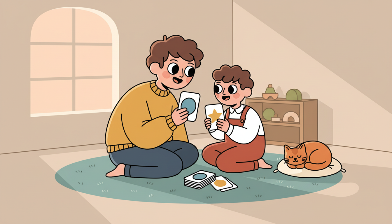 Choose age-appropriate games you can play together in 10 to 15 minutes. Memory matching, simple color or shape games, or card games work well. Take turns, celebrate moves together, and keep the atmosphere light and fun. Focus on enjoying time together rather than winning.