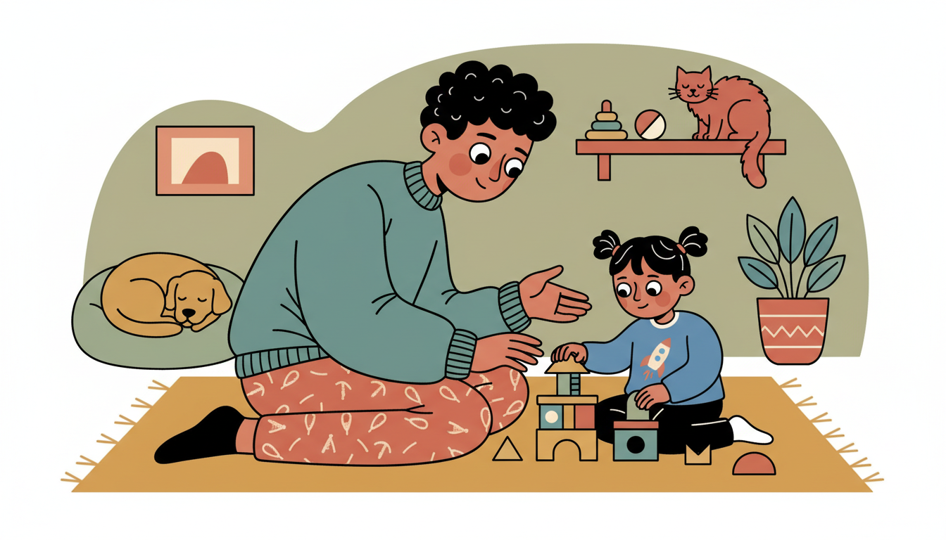 Your warm, supportive presence during independent activities builds your child's confidence and sense of competence. Parental empathy and warm support contribute to young children's socioemotional competence and positive peer relations (Hu et al., 2021). By showing genuine interest in your child's projects, you demonstrate that their ideas and efforts matter, which strengthens your emotional connection.