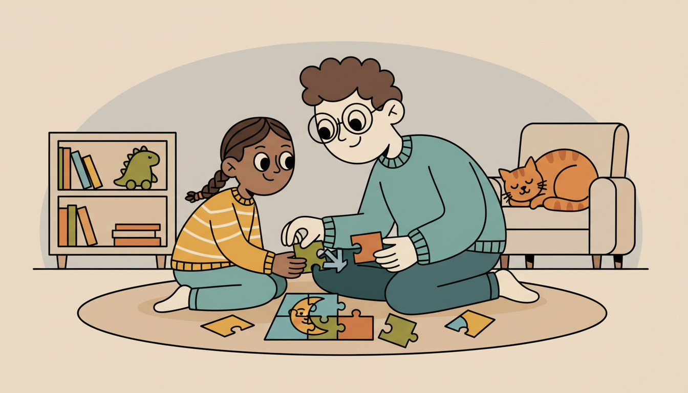 Work on a puzzle that's slightly challenging for your child's current ability. When they get frustrated, acknowledge the feeling and encourage them to take a short break or try a different piece. Guide them to notice their own problem-solving strategies. 'You turned the piece around to see if it fit better.' This teaches that taking breaks and trying different approaches are smart strategies, not giving up.