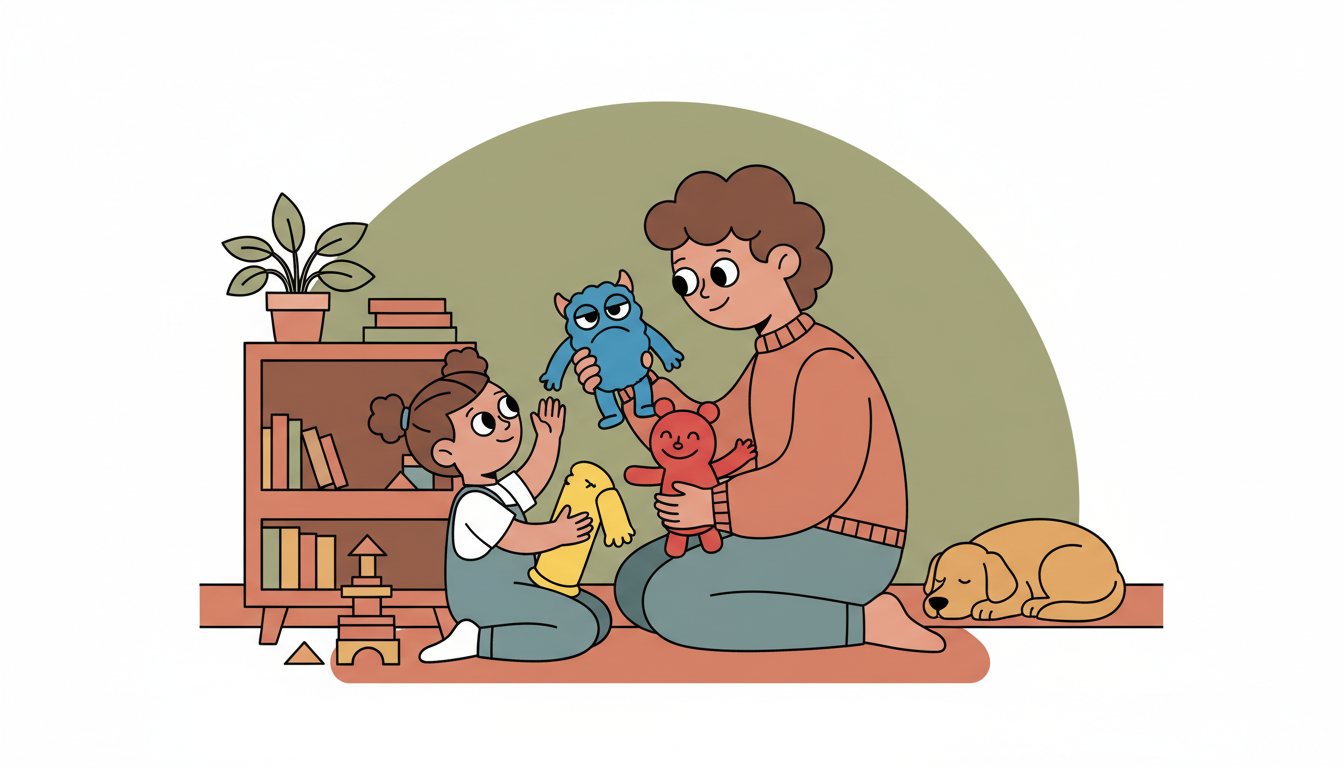 Use stuffed animals or dolls to act out common challenges like a friend not sharing or a tower falling down. Have one toy show frustration, then guide the play to show helpful responses like asking for a turn, taking deep breaths, or trying again. Ask your child what the toy could do to feel better. This safe practice of challenging situations builds coping skills they can use in real moments.
