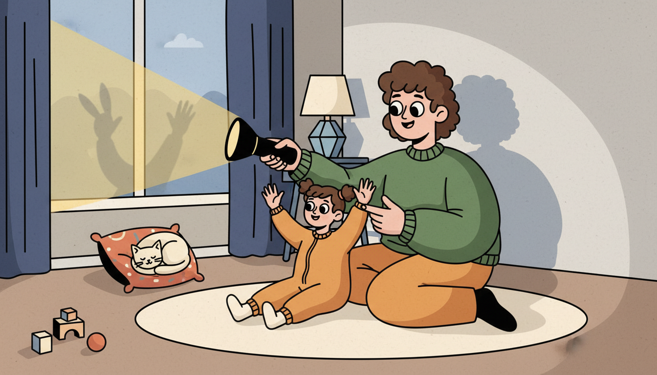Ask prediction questions like 'What do you think will happen if we move closer?' before your child tries something new. Let your child control the flashlight when possible. Physical involvement deepens learning and engagement.