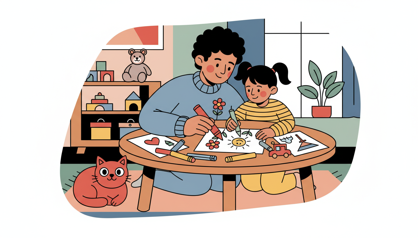 Set aside a few minutes to draw together about things you're both thankful for. Your child can draw people, pets, toys, or experiences they appreciate. You can draw too and share your own gratitude. Talk about why these things matter to you both. This simple practice helps your child notice and name the good things in their life.