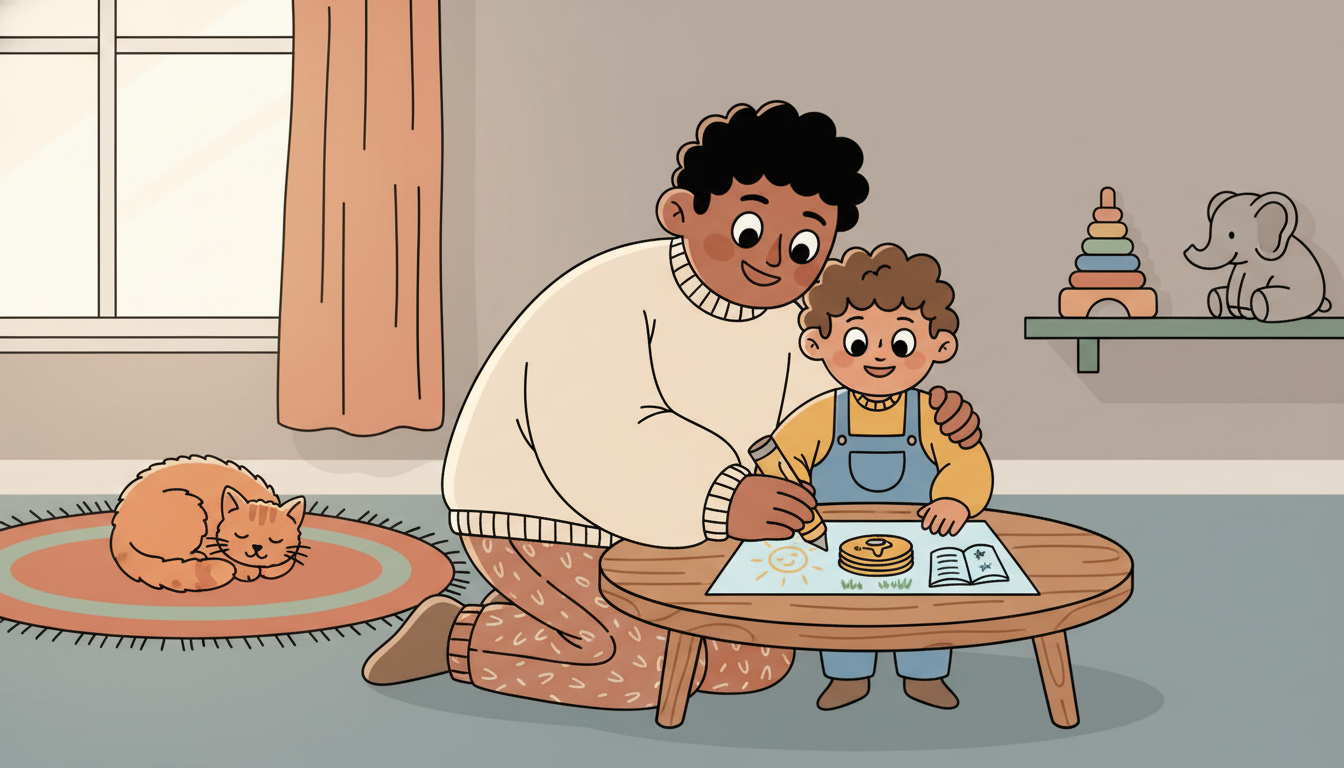 Spend time with your child planning something positive for tomorrow. It can be simple, like choosing a favorite breakfast or picking a book to read. Ask your child what they're looking forward to and help them think of small, happy moments coming soon. Draw or talk about what tomorrow might bring. This helps your child learn to anticipate good things and see the future with hope and excitement.