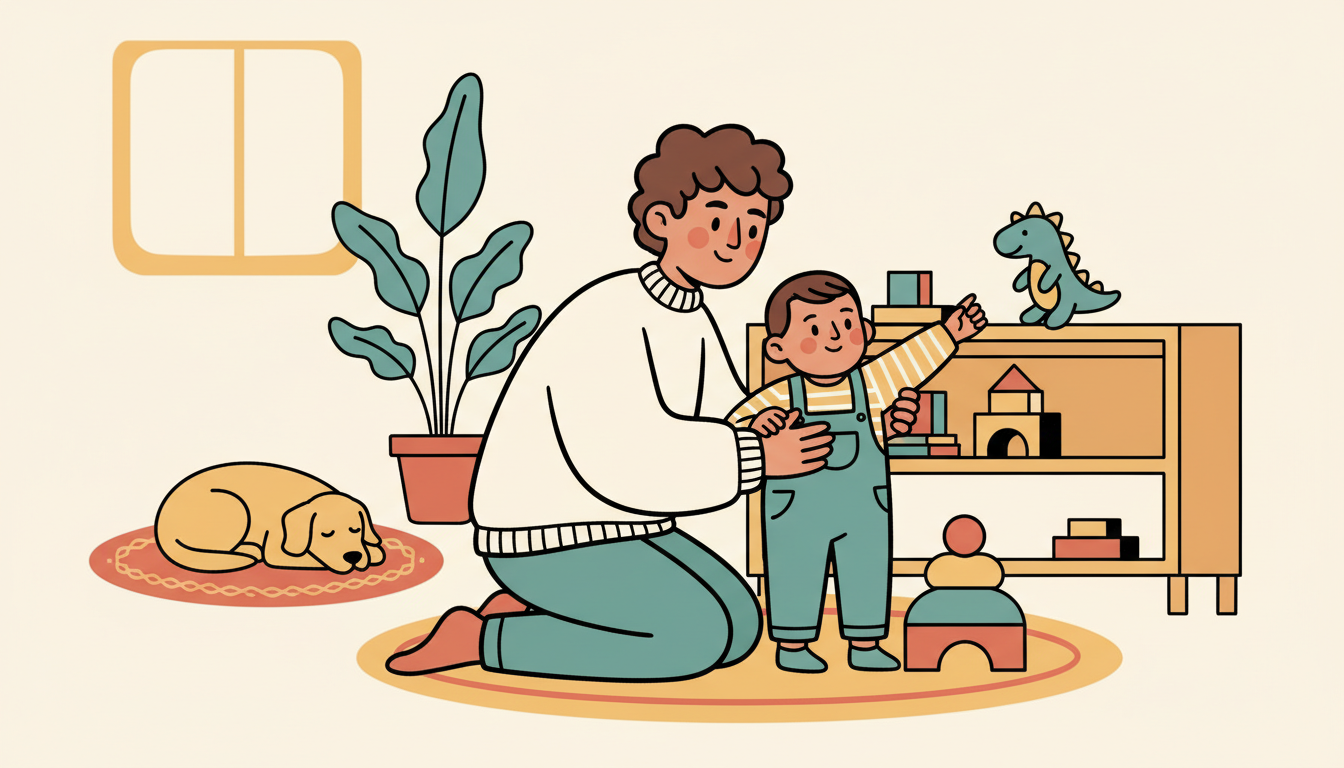 During play or quiet moments, talk about simple things your child will be able to do as they grow. Say, "When you're bigger, you'll reach that shelf" or "Soon you'll be able to put on your coat by yourself." Keep it concrete and focused on near-future abilities. This builds positive expectations about growth and development, teaching your child that abilities expand over time.