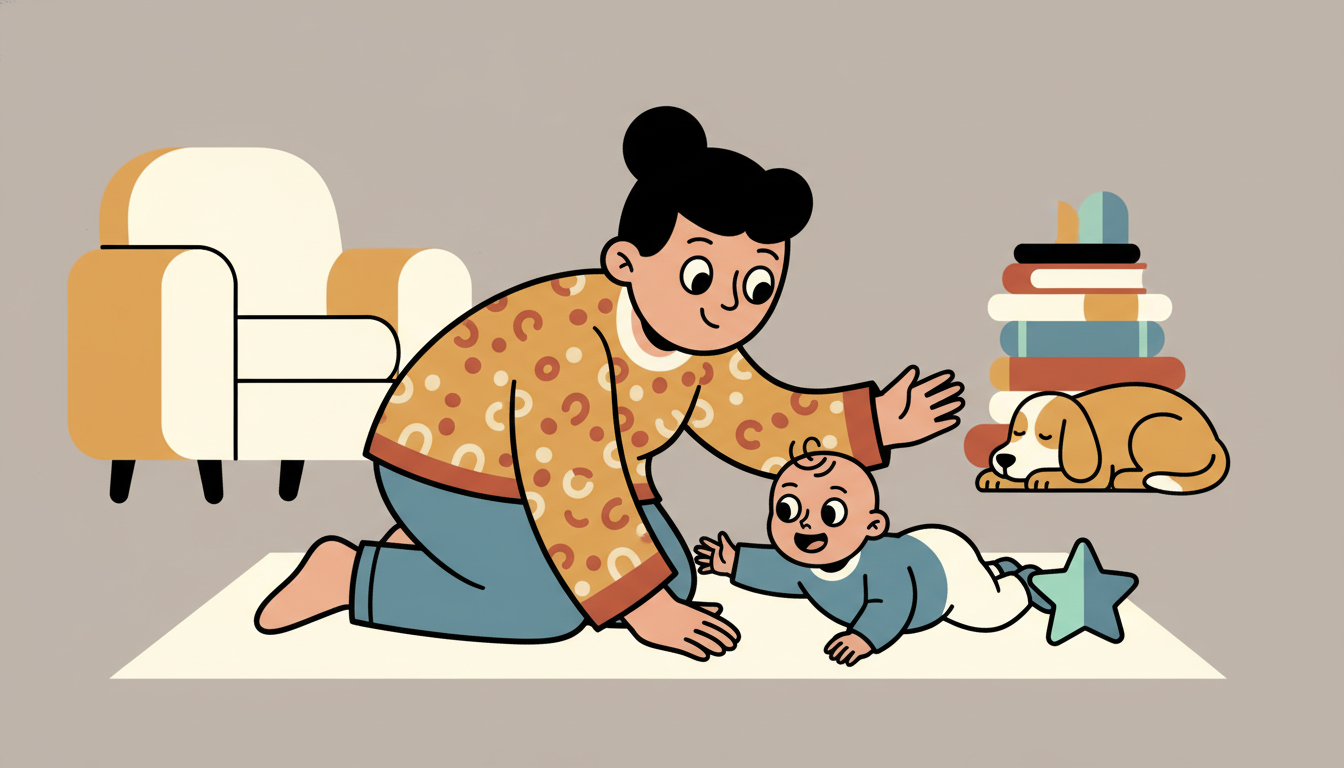 Place a favorite toy just beyond your child's immediate grasp during floor time and give them a moment to work toward it before helping. Watch as they stretch, roll, or shift their body to reach the object. Wait a few seconds to see what they can do on their own. If they become frustrated, move the toy closer or offer encouragement, but allow that brief struggle first.