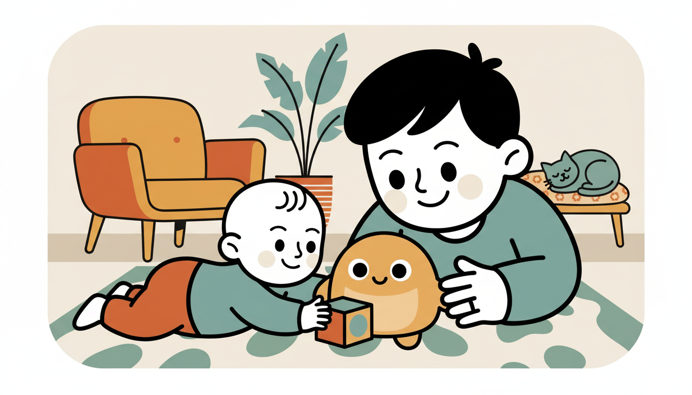 Place a favorite toy just out of your child's reach and put a soft obstacle in the way, like a small pillow or stuffed animal. Encourage your child to figure out how to move the obstacle or go around it to reach the toy. Stay close and watch their problem-solving process. This activity works well during tummy time or sitting play. Let them work on the challenge for a minute or two before helping if needed.