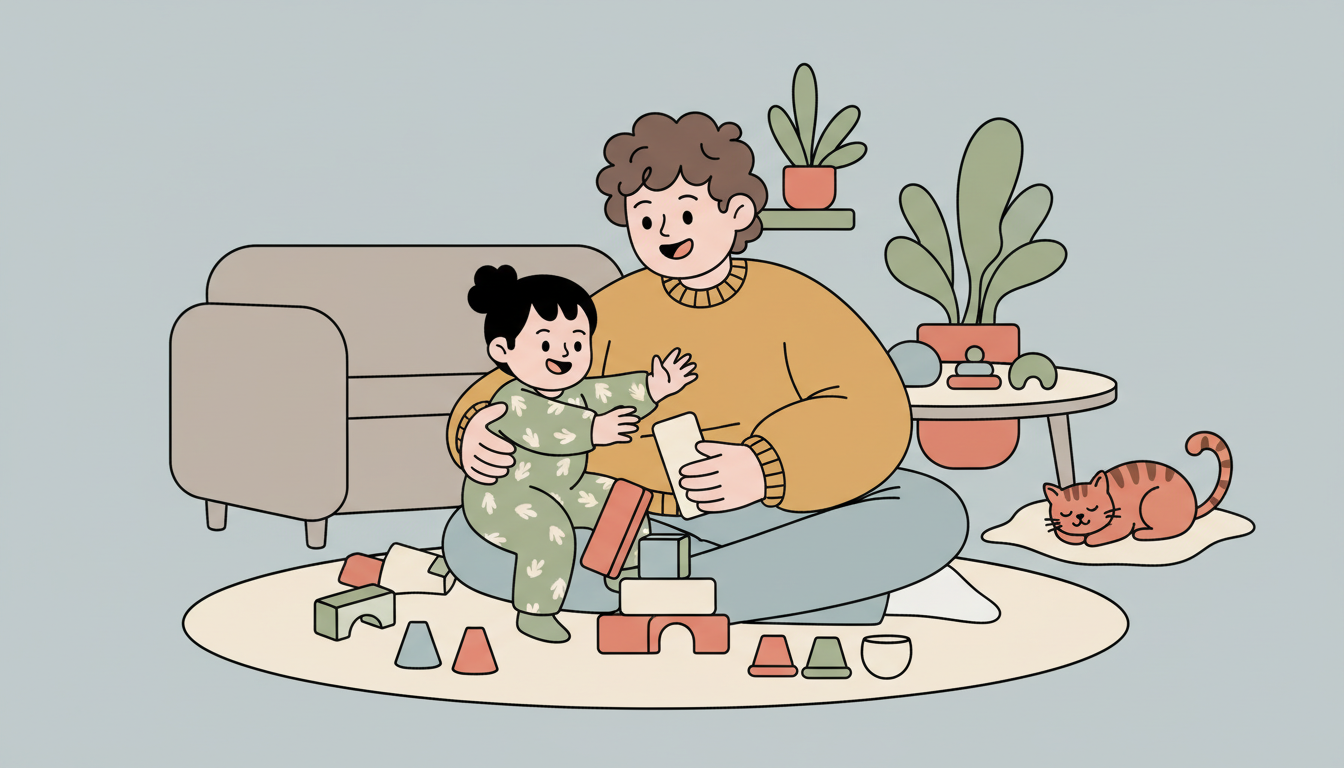 Give your child four to six blocks or cups to stack. Let them build towers and knock them down. This activity develops hand-eye coordination, spatial awareness, and understanding of balance. The repeated building helps children learn through experimentation.