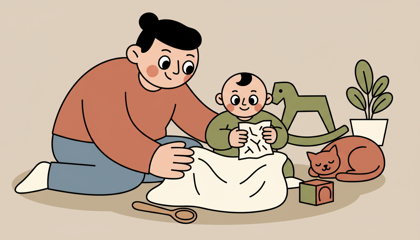 Gather safe household items with different textures like a soft blanket, smooth wooden spoon, or crinkly paper. Let your child touch and explore each one while you describe what they're feeling. Spend two to three minutes with each texture. This sensory activity supports cognitive development while providing the varied experiences important for mental health and learning.